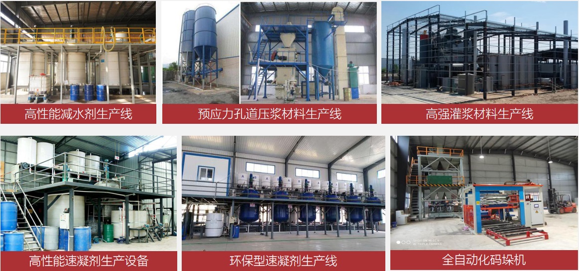 公司經(jīng)過多年發(fā)展,已逐漸形成了成熟的“1+X”(1個(gè)生產(chǎn)總廠,X個(gè)生產(chǎn)分廠)生產(chǎn)布局,其中湖南婁底漣源總廠,總投資4500萬元,引進(jìn)多套混凝土外加劑生產(chǎn)多套設(shè)備,可支持壓漿料、速凝劑、灌漿料、膨脹劑等全系產(chǎn)品出貨,年產(chǎn)量15萬噸以上。