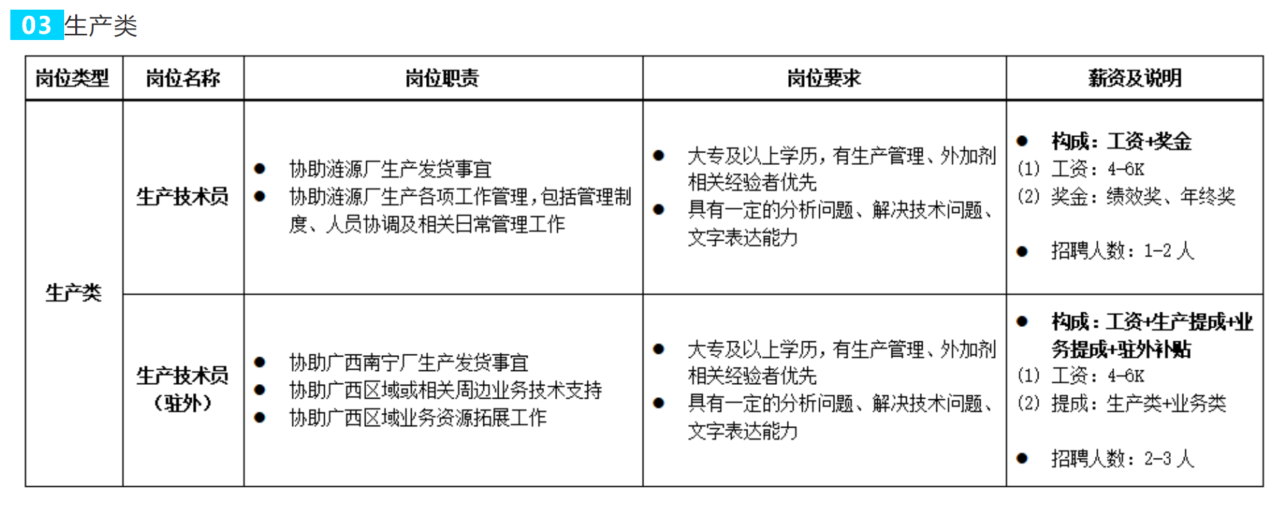 了解路祥 公司在不斷的壯大過程中,由當初的一個廠發展成在湖南長沙、廣西南寧、貴州貴陽、云南安寧、重慶、新疆、甘肅均設立了分廠,由單一產品擴展的多個系列產品,外加劑系列產品年生產能力達到30萬噸以上。 湖南路祥正處于蓬勃成長階段,業務量呈爆發式增長趨勢,適逢公司發展良機,現有所列職位空缺,誠邀有識之士加入團隊,共筑美好未來。 1. 薪酬:按湖南路祥薪酬制度執行。